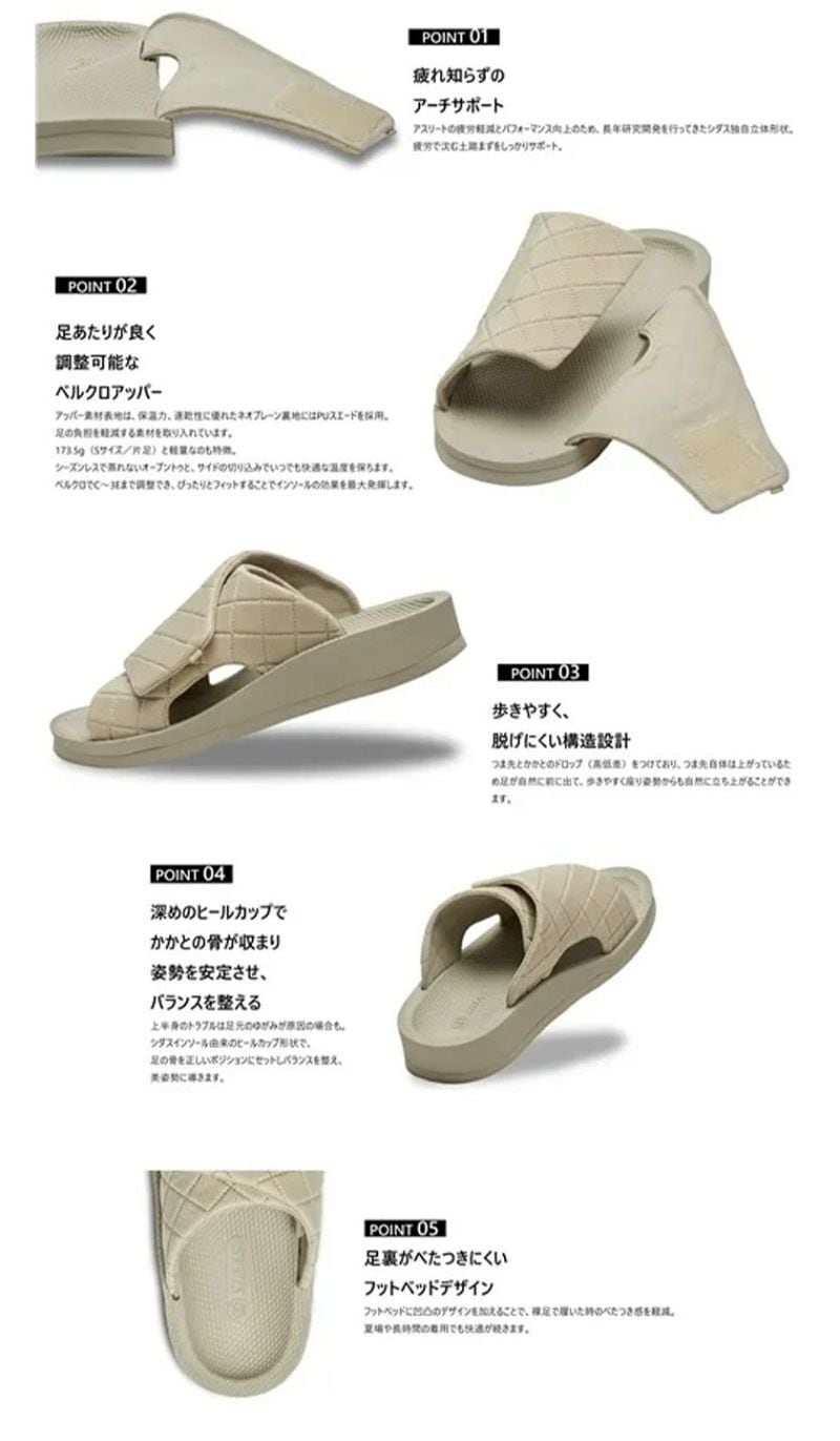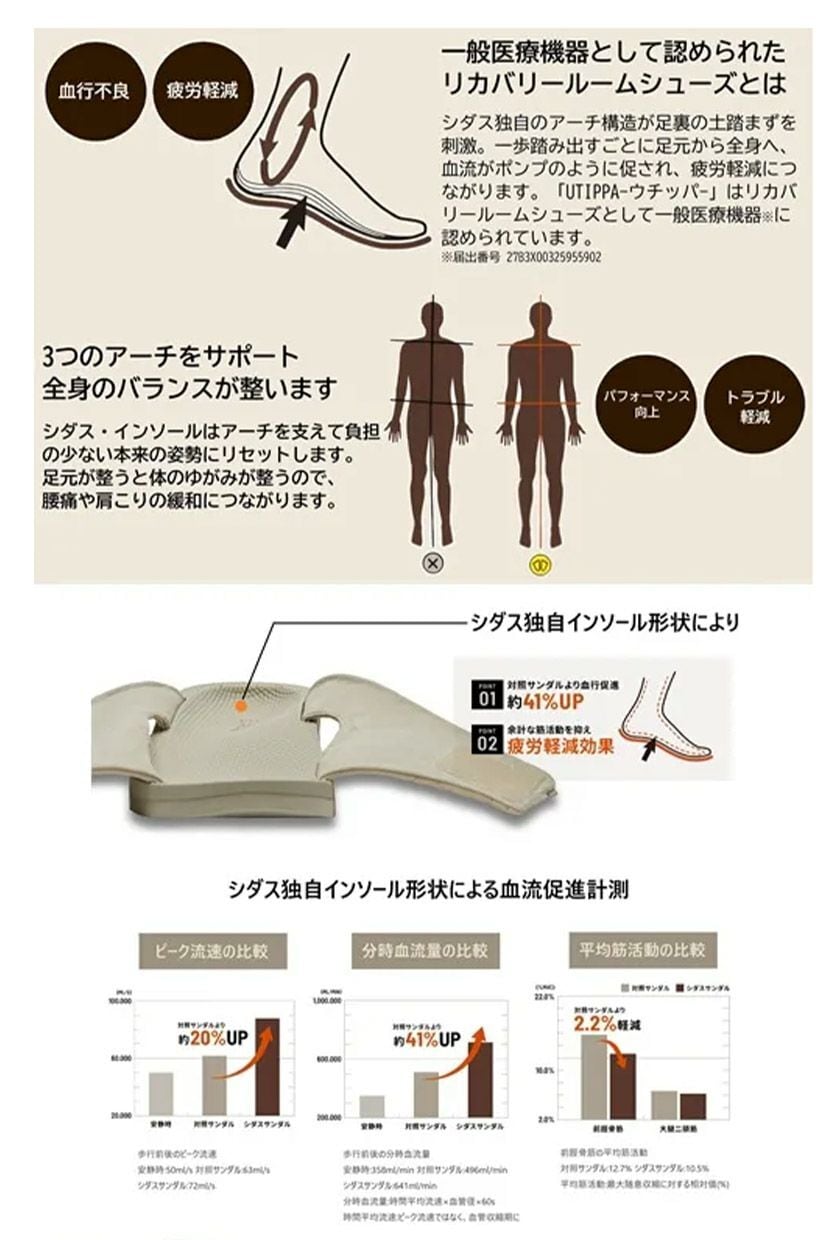 シダス独自の立体形状で足裏を支え歩くたびに足にかかる負担を軽減します。