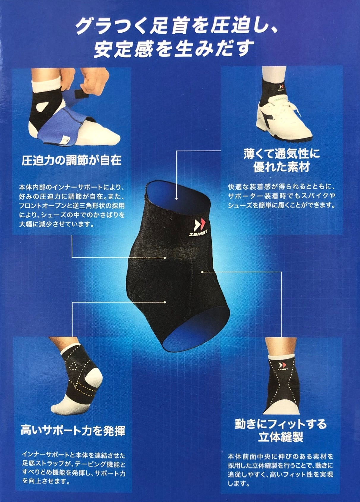 安定したサポート力で足首のぐらつきを抑えます。