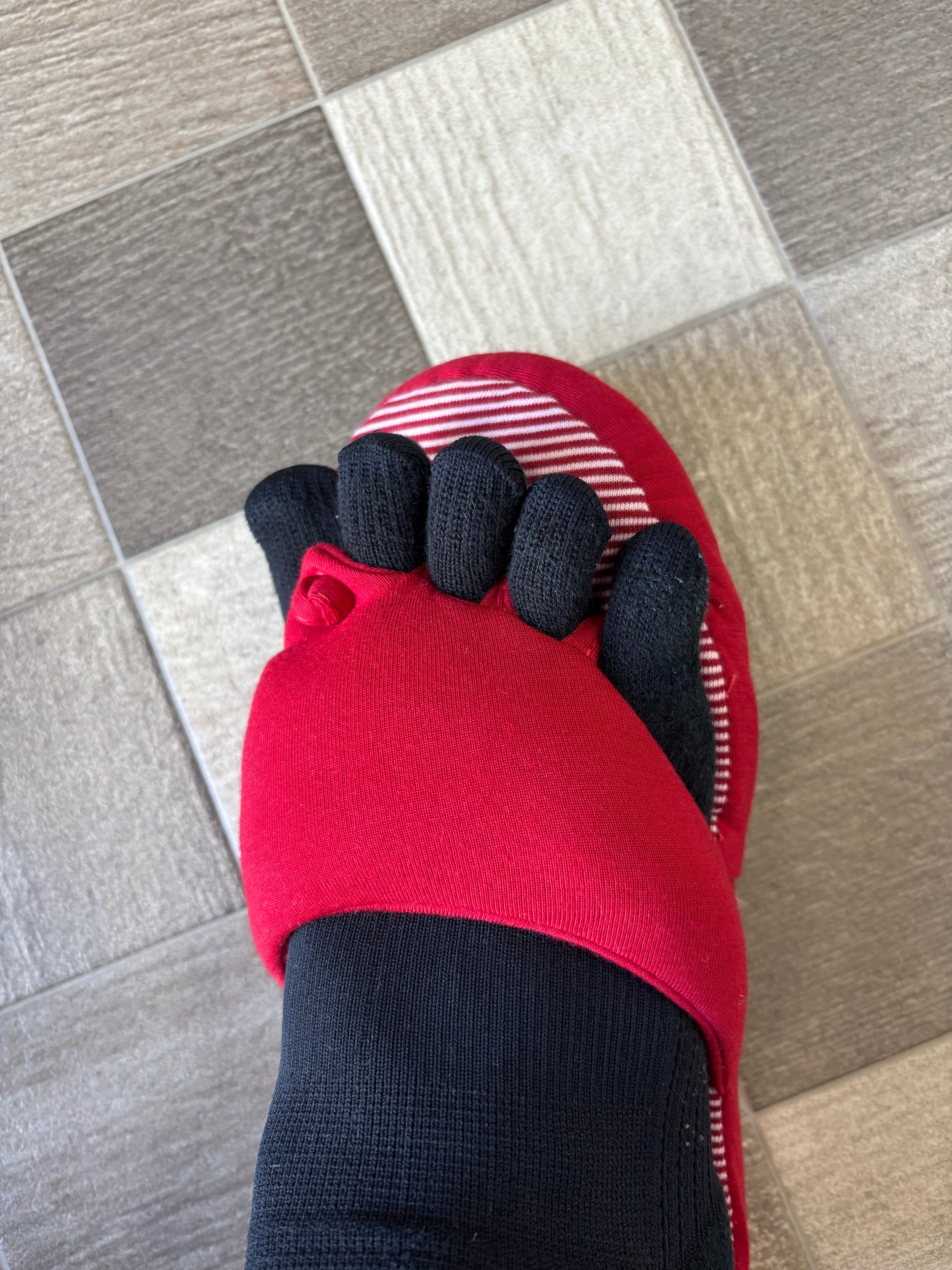 足裏土踏まずあたりのスポンジボールが足裏をソフトに刺激。