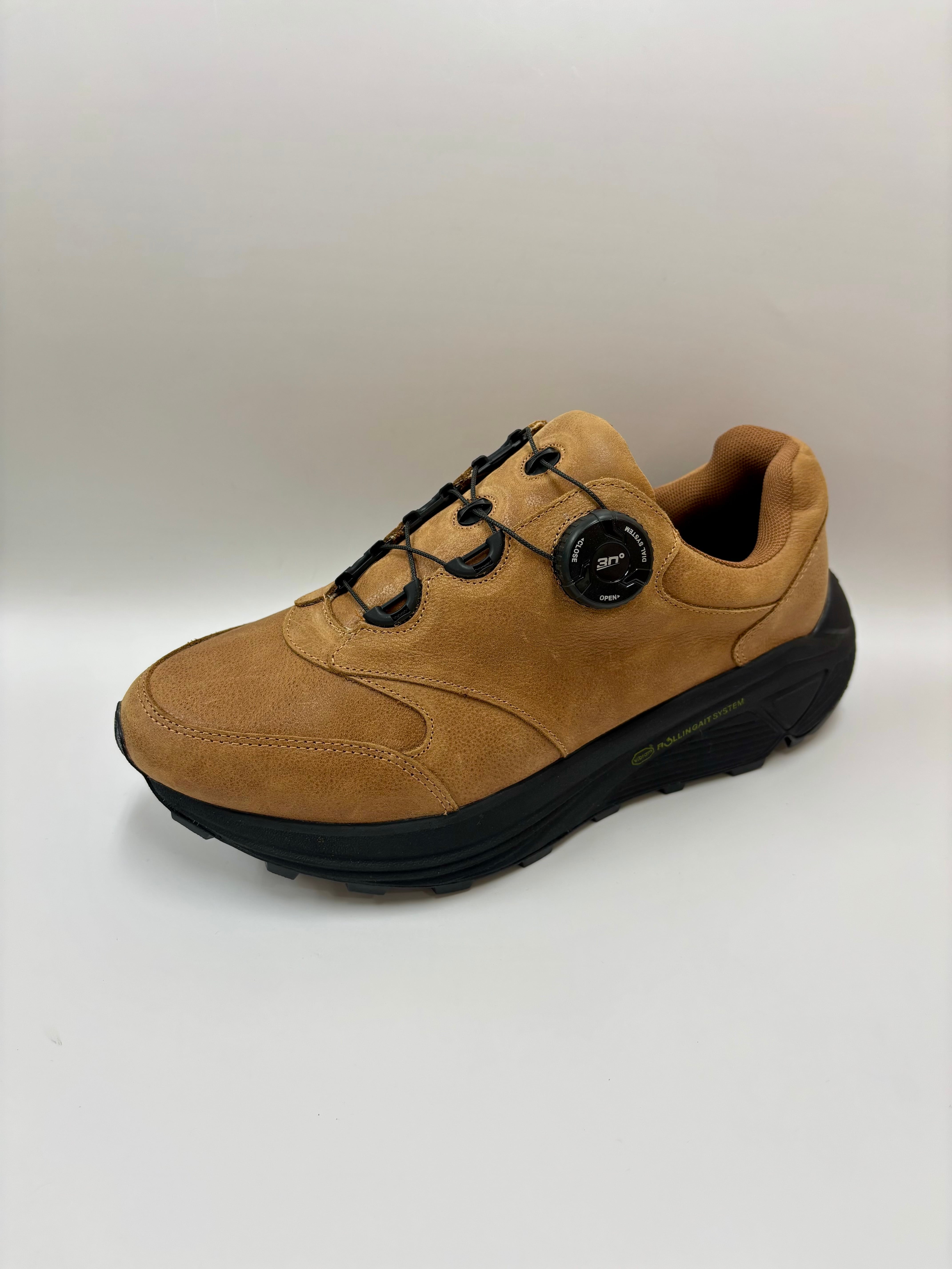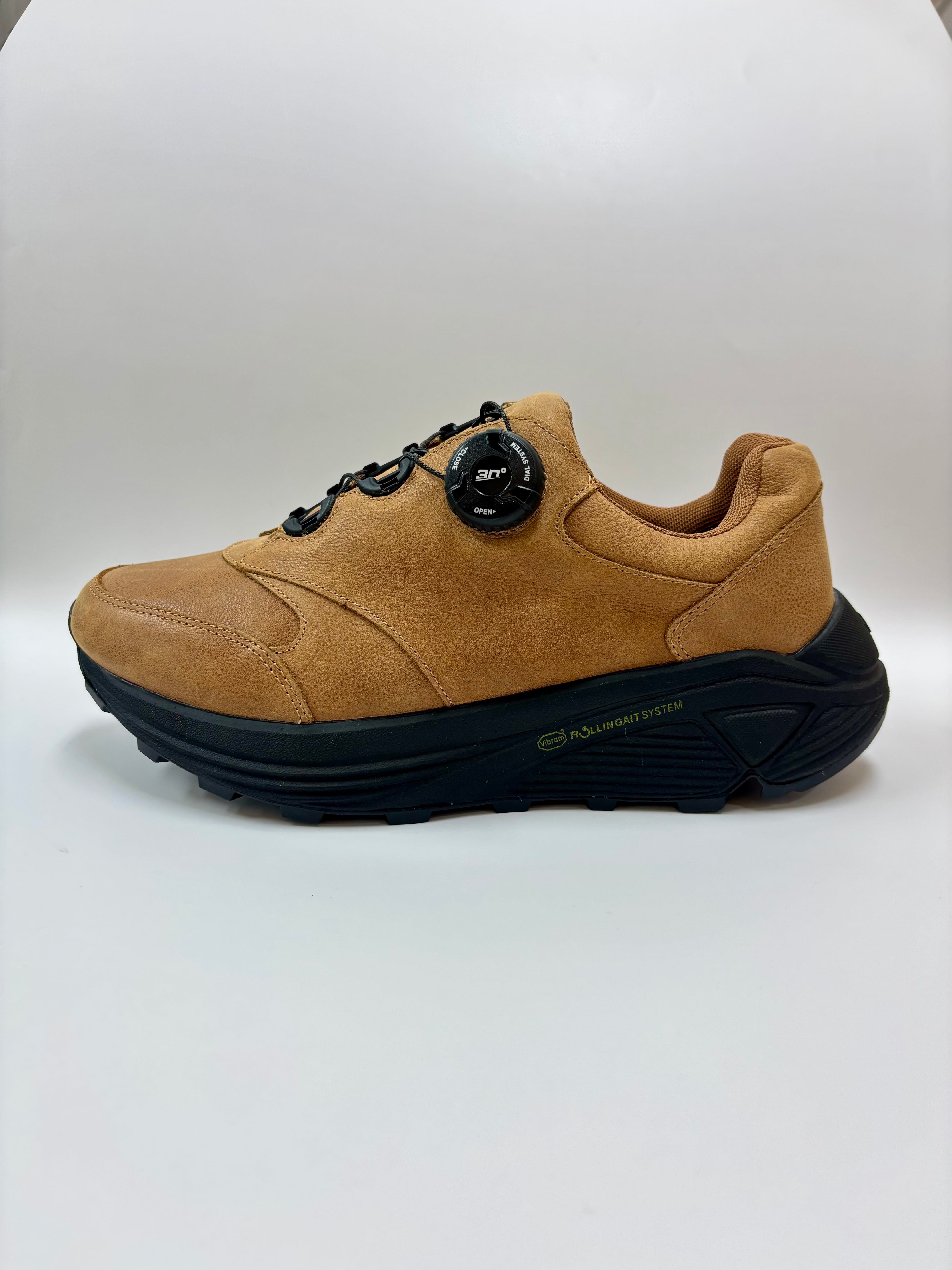 ・RGS(ローリングゲイトシステム)着地の衝撃を和らげながら体重移動を前進のエネルギーに変換するシステムで自然な足運びをサポートし長時間の歩行による疲労を軽減する形状のソールです。