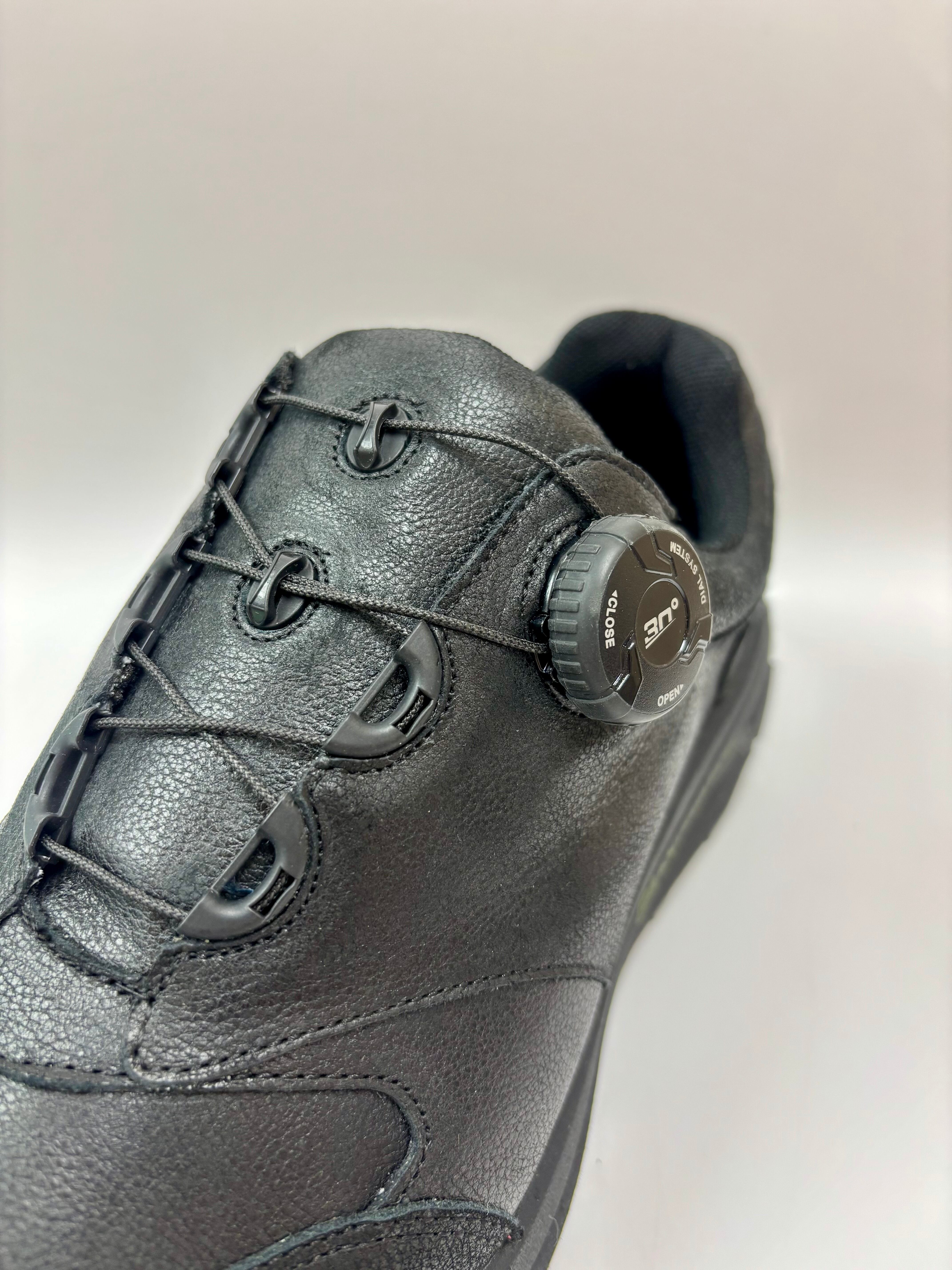 ・RGS(ローリングゲイトシステム)着地の衝撃を和らげながら体重移動を前進のエネルギーに変換するシステムで自然な足運びをサポートし長時間の歩行による疲労を軽減する形状のソールです。
