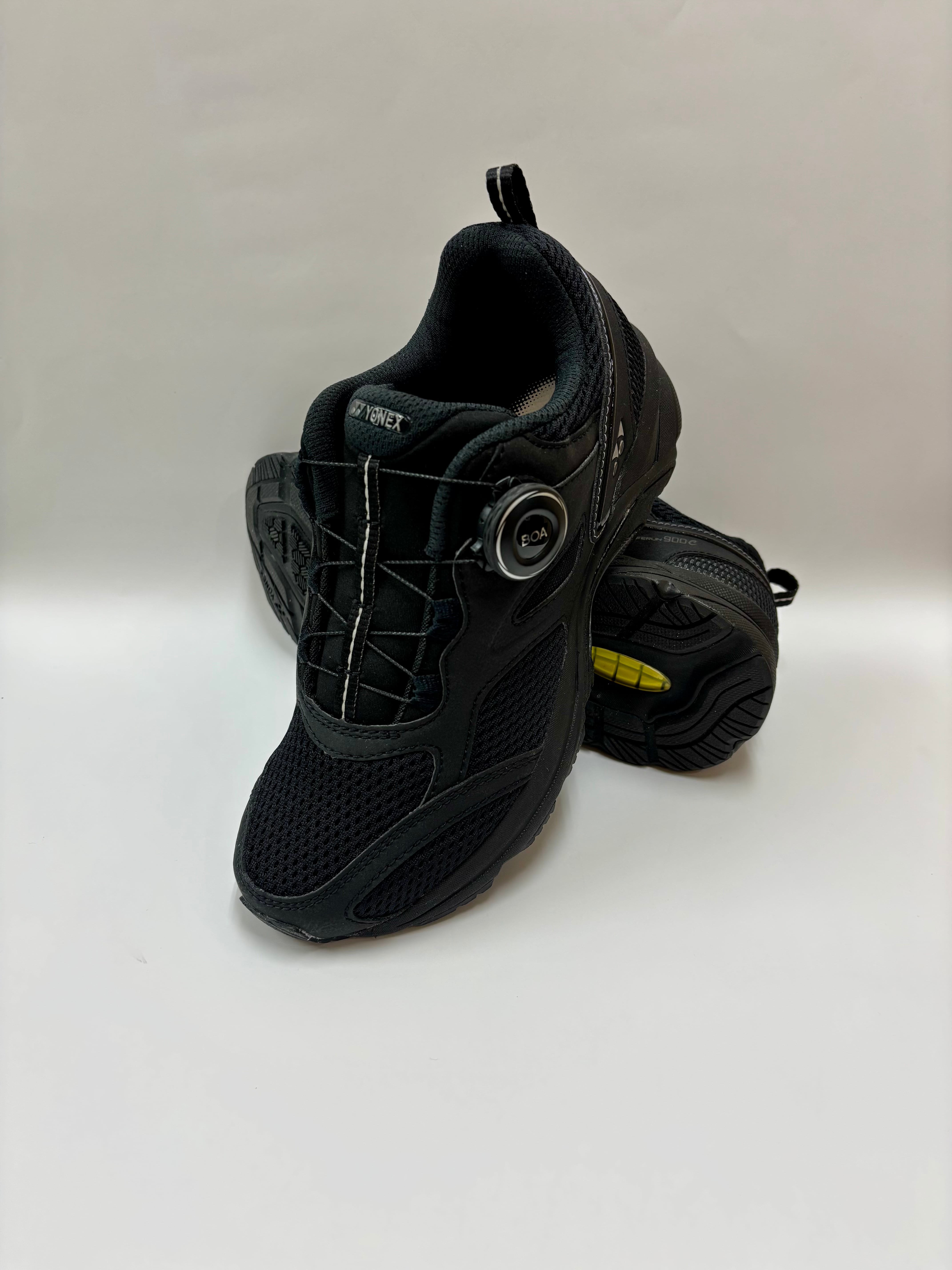 ヨネックス独自の衝撃吸収性と反発性を併せ持つ衝撃吸収素材パワークッションに反発性の高い特殊樹脂を添加し格子状に配置した新構造「パワークッションプラス」12mの高さから落とした生卵が割れずに6m以上跳ね返る新衝撃吸収反発素材。