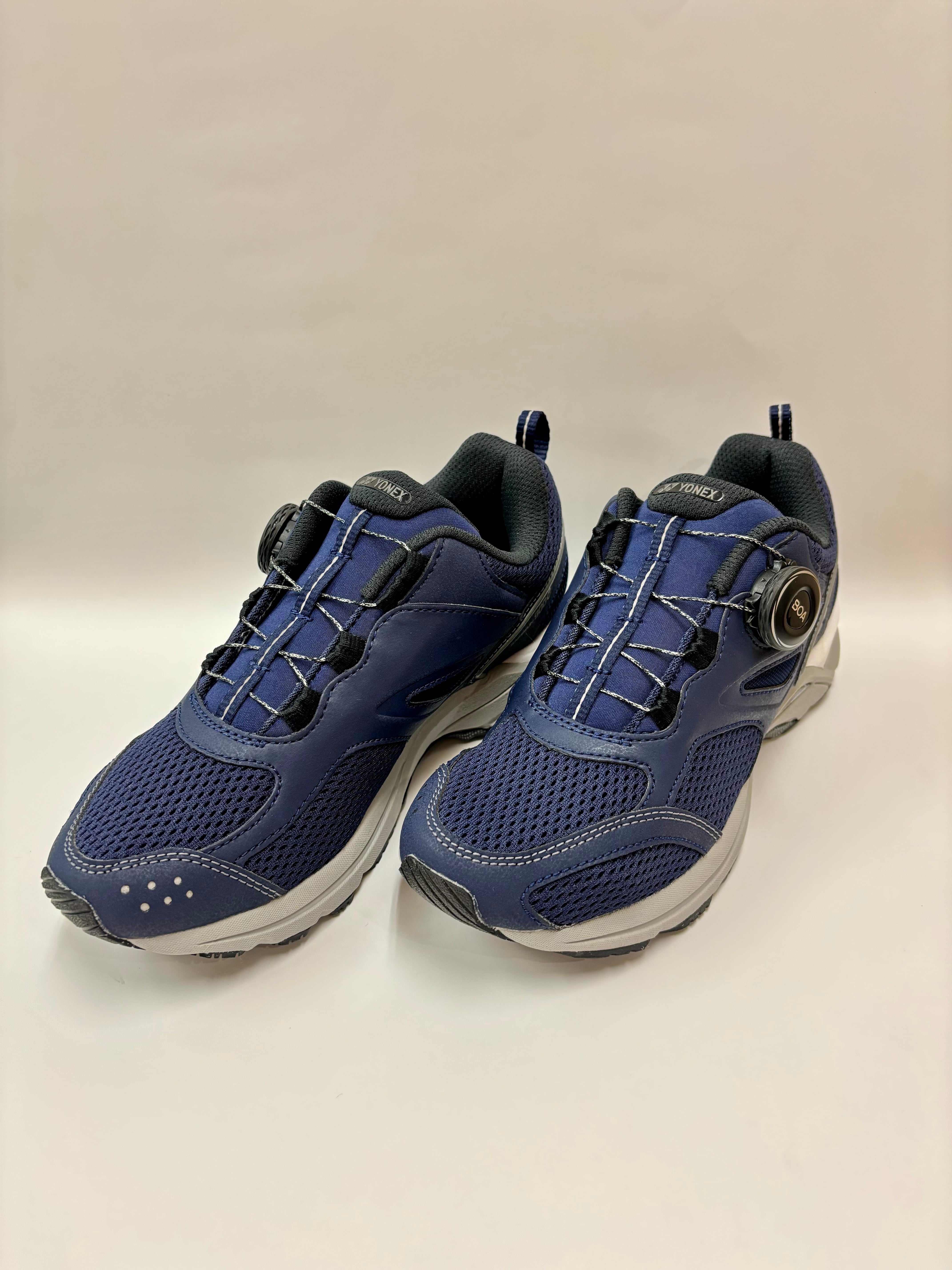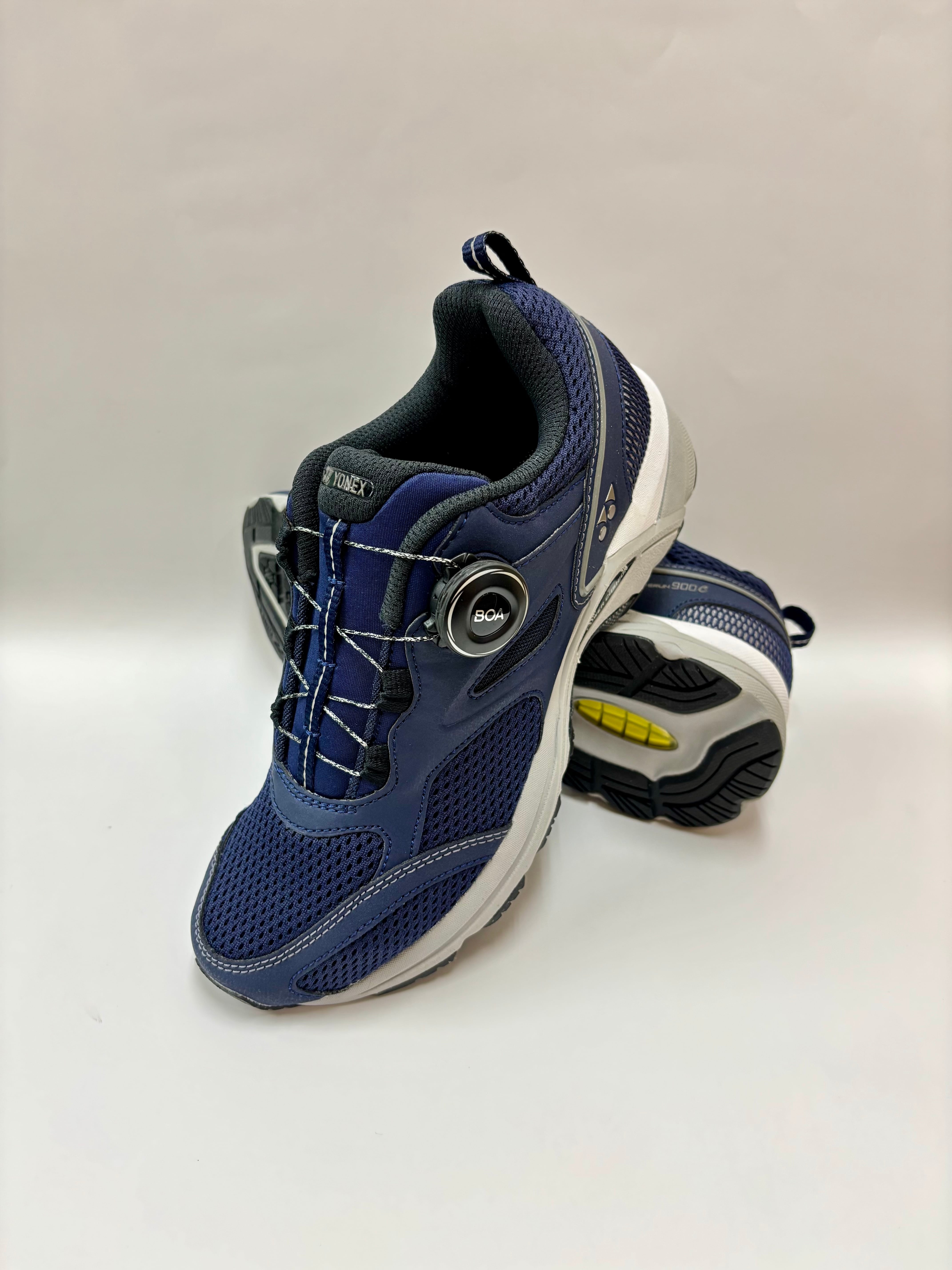 ヨネックス独自の衝撃吸収性と反発性を併せ持つ衝撃吸収素材パワークッションに反発性の高い特殊樹脂を添加し格子状に配置した新構造「パワークッションプラス」12mの高さから落とした生卵が割れずに6m以上跳ね返る新衝撃吸収反発素材。
